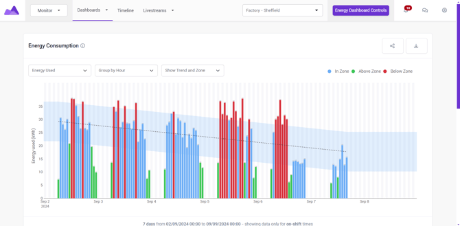 Click the image below to go through our interactive guide showing how to navigate the monitor workspace e.g. Dashboard, Timeline and Livestream for Energy