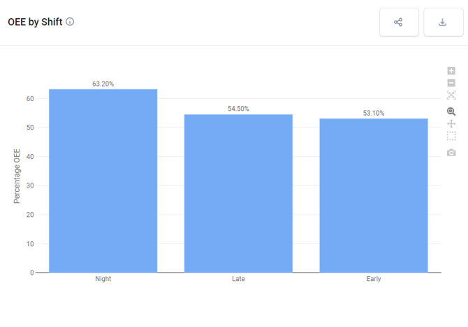 Use this chart to figure out whether actions you have taken are increasing OEE over time. You can also use it to track whether you are achieving an OEE target.